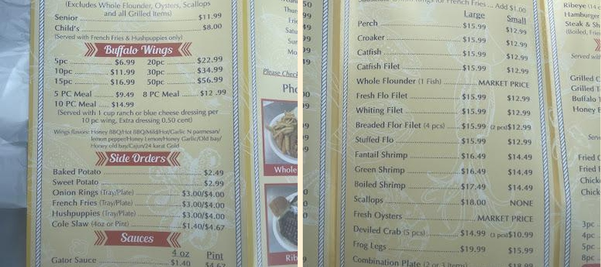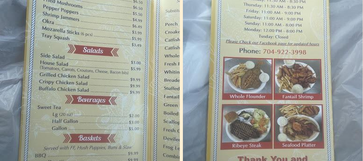 Long Creek Fish Fry serves a variety of seafood and comfort food. Enjoy fried fish, chicken, and ribeye steak. They also offer delicious sides like baked potatoes and hush puppies.